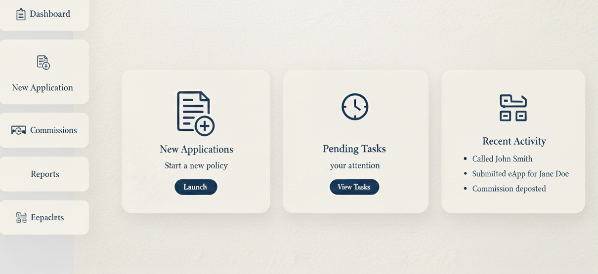 Below are simple conceptual layouts. In real deployments, the pages are shaped around your business, data, and governance requirements — including on-prem and isolated environments.